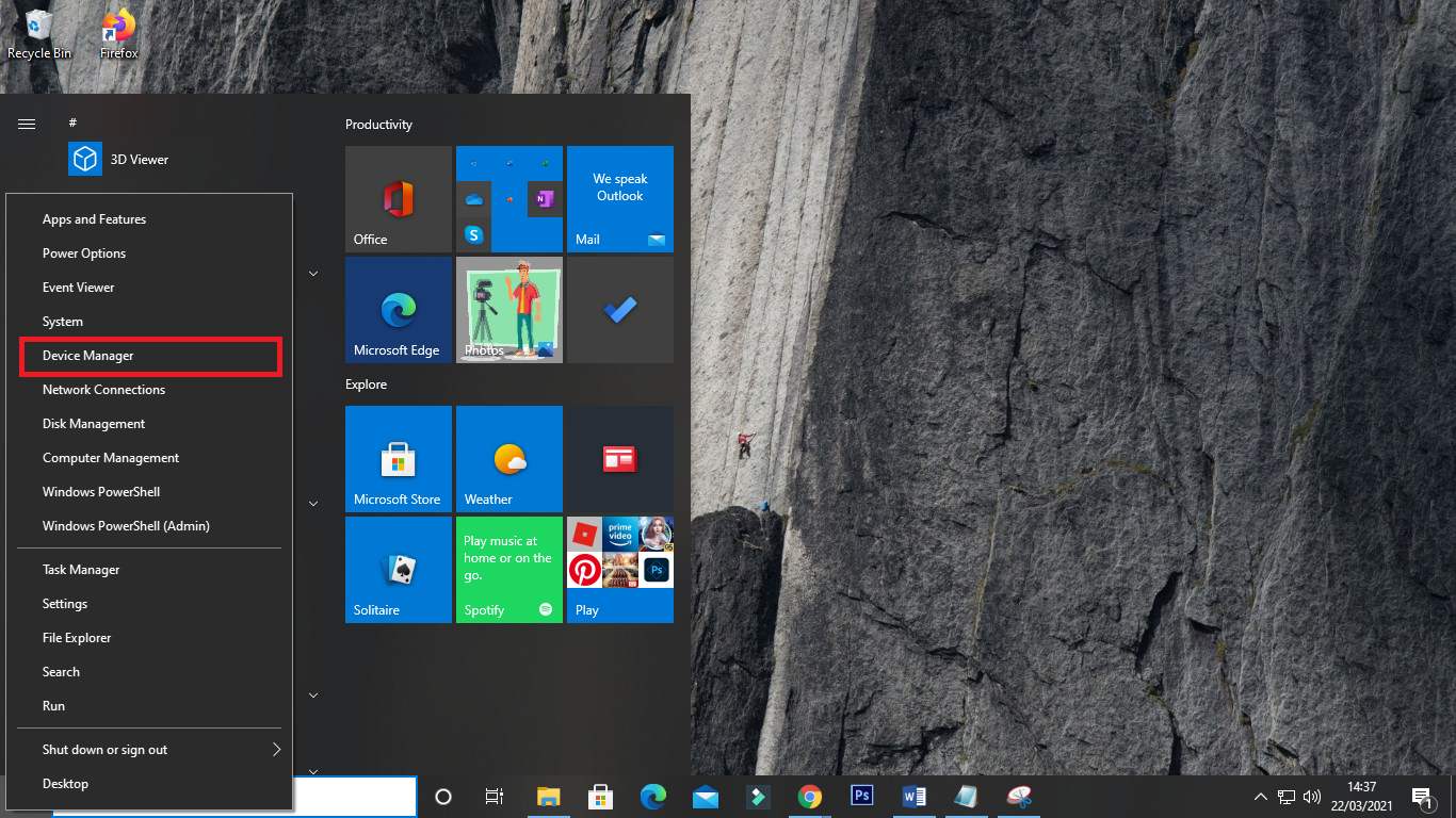 1. Pertama buka Device Manager, dengan klik kanan tombol Start Menu dan pilih Device Manager.