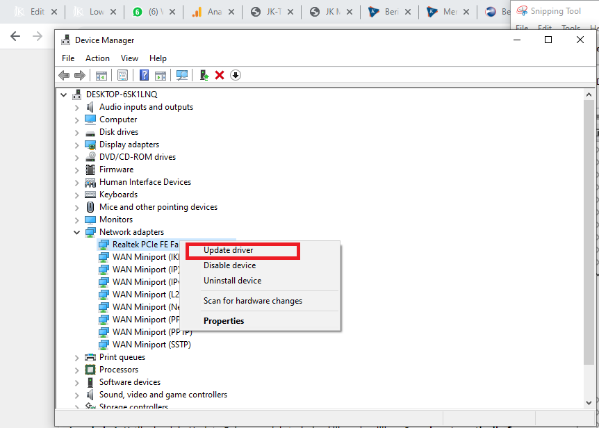 3. Kemudian klik kanan pada perangkat tersebut dan klik pilihan Update Driver.