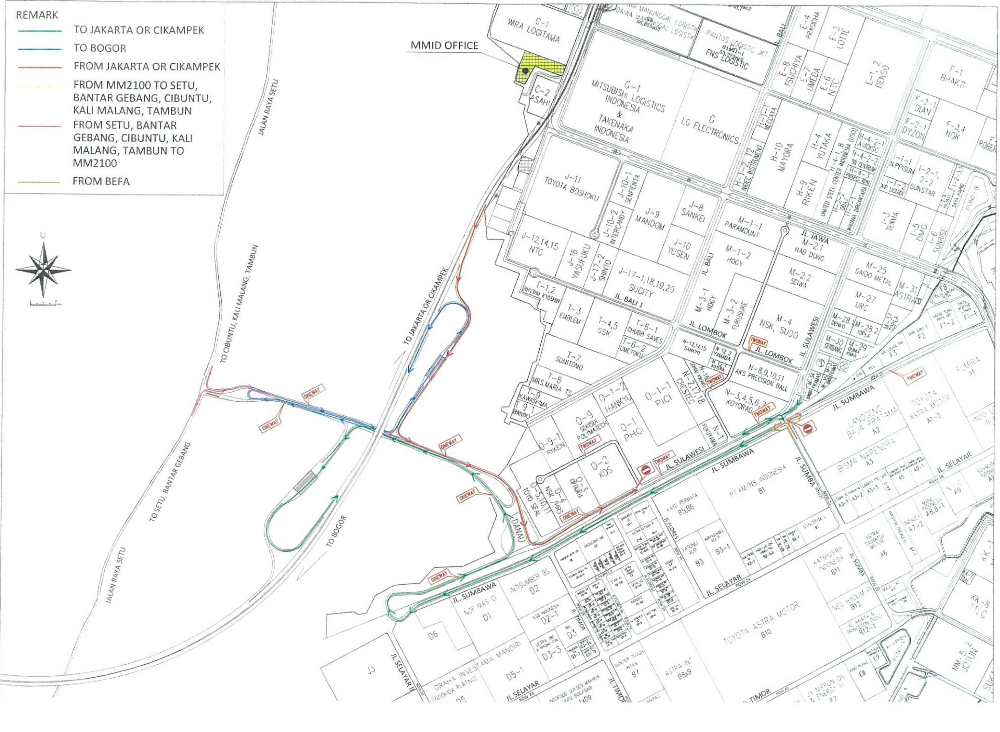 Adapun dari pengelola kawasan industri MM2100 menyampaikan bahwa jalan akses existing dari kawasan industri MM2100 menuju Jalan Tol Cikampek akan di tutup permanen dan kendaraan yang ingin menggunakan jalan tol dari MM2100 menuju Cikampek dapat melalui akses Gerbang Tol Setu Utara 1 atau masuk melalui Gerbang Tol Cikarang Barat dengan melintasi jalan antar kawasan.
