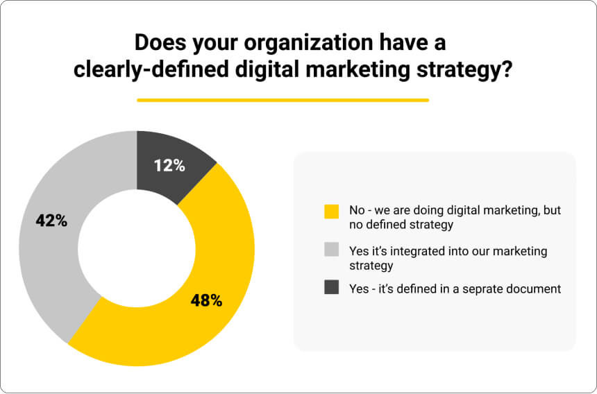 Terlepas dari transformasi digital ini, laporan benchmark maturitas digital untuk tahun 2021 menunjukkan bahwa perusahaan yang melakukan kegiatan pemasaran digital masih belum memiliki strategi pemasaran digital yang pasti.