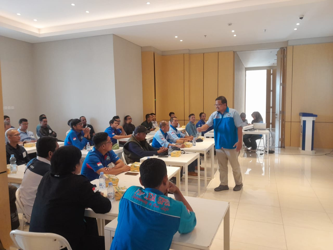 Narasumber sekaligus pemimpin sesi teknis, Hadi Maryono Ketua DPC LEM SPSI Kabupaten/Kota Bekasi, menjelaskan bahwa pelatihan hari ini difokuskan pada pemahaman mendasar sistem pendinginan. Materi mencakup pengenalan alat servis, penggunaan refrigeran, serta prinsip dasar pendinginan yang berlaku pada berbagai perangkat seperti AC, kulkas, hingga cold storage.