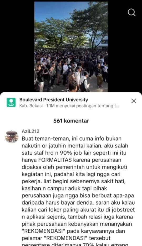 Screenshoot Medsos Job Fair Hanya formalitas